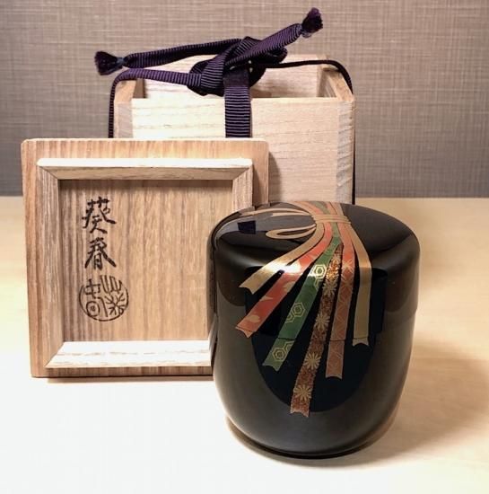 漆工 北村葵春作 蒔絵熨斗中棗 無傷保証 共箱 古物