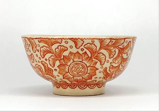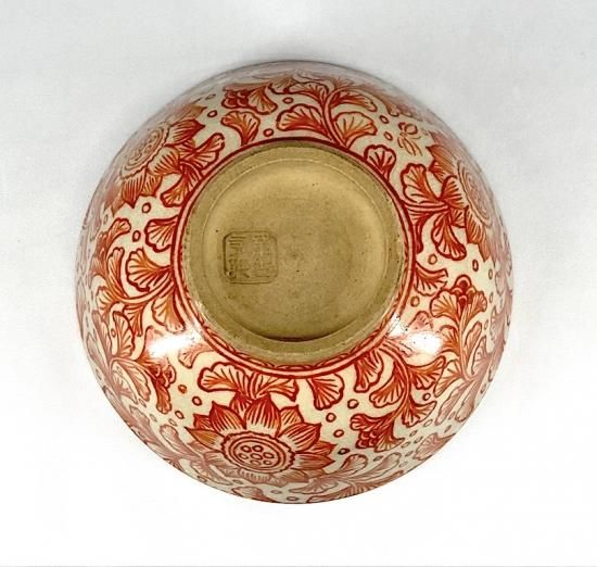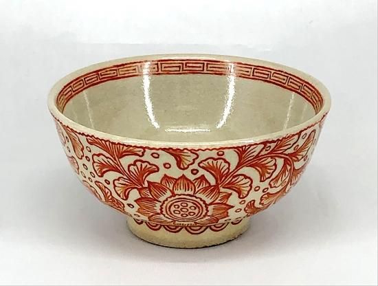 萬古焼 森有節 作 古萬古赤絵写 鉢 無傷 合箱 保証。