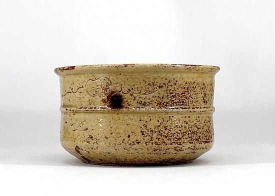 黄瀬戸茶碗。初名古陶園春逸を名乗り、弟小三郎独立に春逸を贈り二代作助を名乗る。