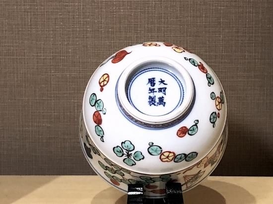 京焼・清水焼 叶松谷作 大明萬歴年製写 小服茶碗 箱合 無傷。