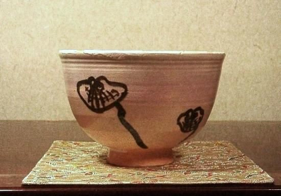 絵御本 松田蘇川作 沢守半翠画 霊芝 御本手 茶碗 共箱 無傷 古物。