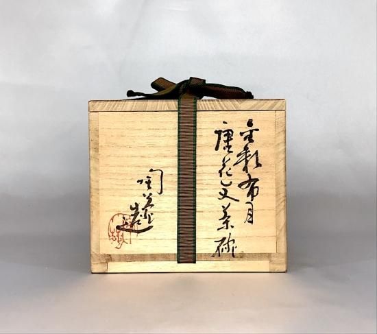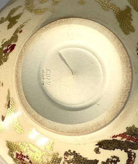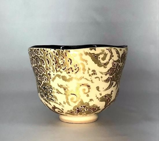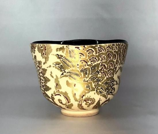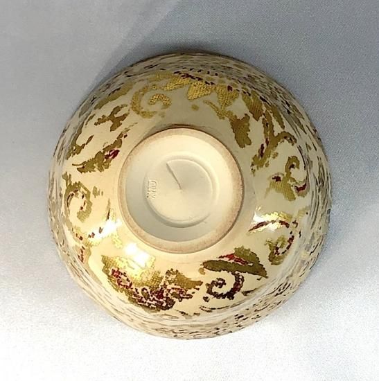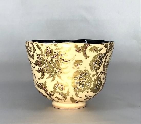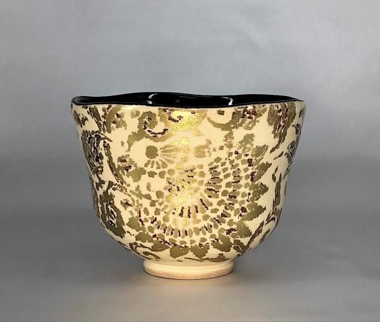 京焼・清水焼 村田陶菀作 金彩布目唐花文 茶碗 無傷 共箱 保証。
