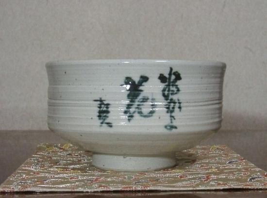 東陶会 宮之原 謙 作 賛・為かよ花 作者不明 白磁 茶碗 無傷 箱合 保証。