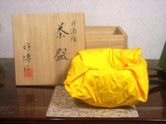 桃山窯 木村好博作 油滴釉 茶碗 無傷 共箱 保証。