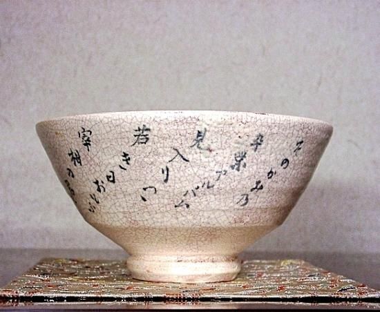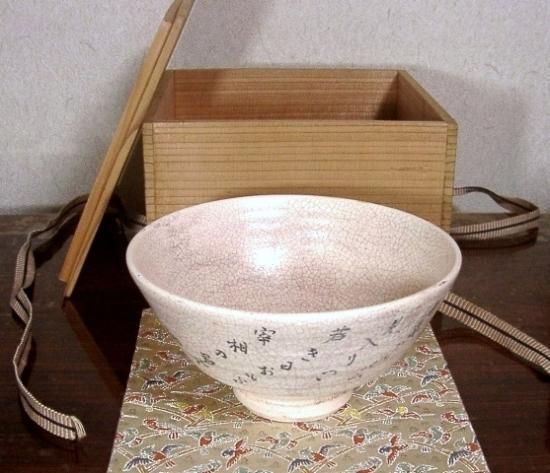 楽焼 高台寺焼 建仁寺七代管長 竹田益州老師 筆 銘:和気 永興明道 作 無傷 共箱 保証。