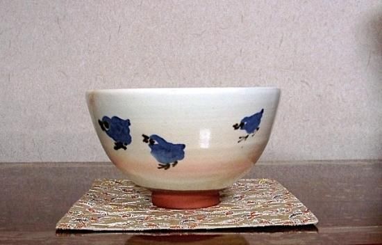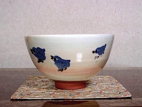 京焼・清水焼 花背窯 徳力富吉郎 作 千鳥 在銘 無傷 共箱 古物。