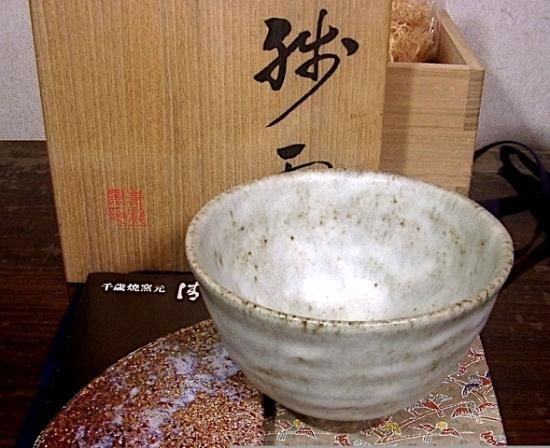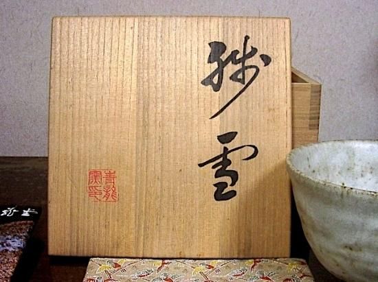 京焼・高台寺窯 建仁寺七代管長 竹田益州老師 筆 銘:「好日」茶碗 無傷 共箱 保証。