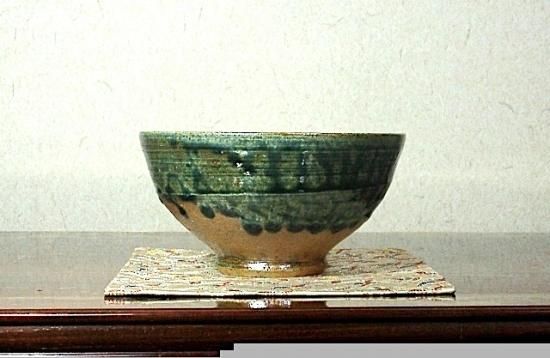 益子焼 秋山一夫 作 呉須 茶碗 無傷 共箱 保証。