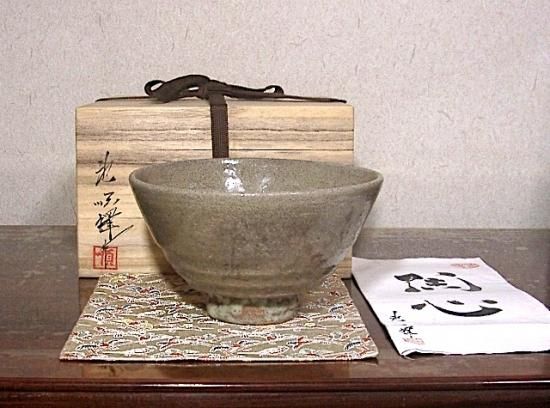 韓国 樊川窯 安 東五 作 雲鶴青磁 茶碗 無傷 箱合 保証。