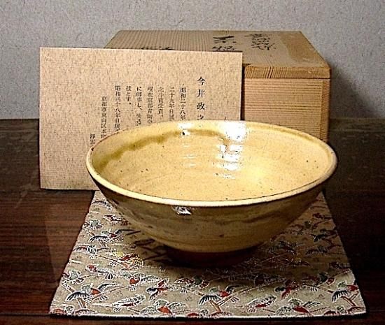 京焼・清水焼 今井政之 作 黄伊羅保 茶碗 無傷 共箱 。