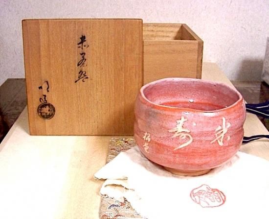 裏千家流派 井口海仙宗匠 薫風 花押 幸山窯 茶碗 共箱 無傷 古物。