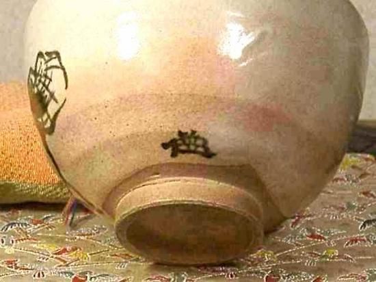 京焼・清水焼 高橋道八 (五世) 作 桃山御本 五三桐紋 茶碗 無傷 箱合 保証。