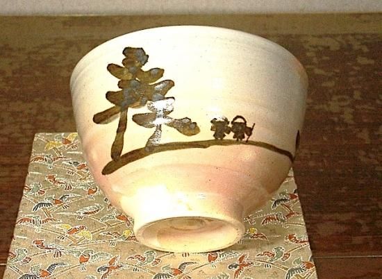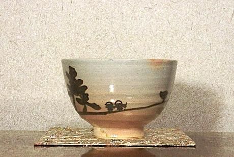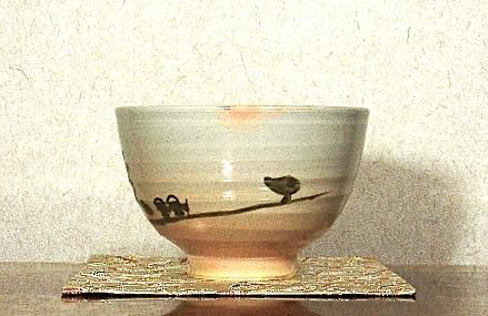 宇治朝日窯 松林豊斎 作 雲水図 茶碗 無傷 共箱 保証。