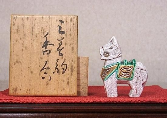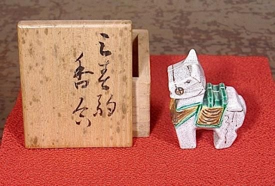 京焼・清水焼 東山窯 宮永東山(初代)作 三春駒 香合 共箱 無傷 保証。