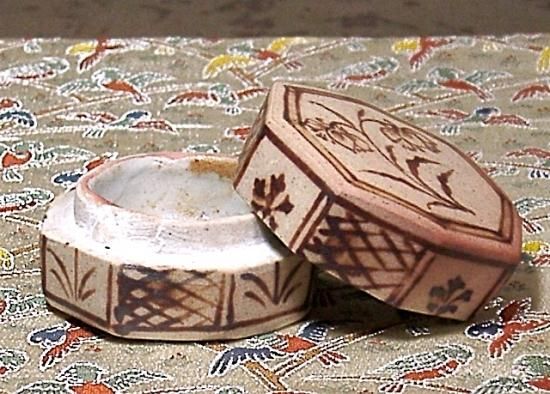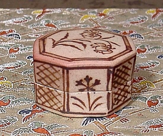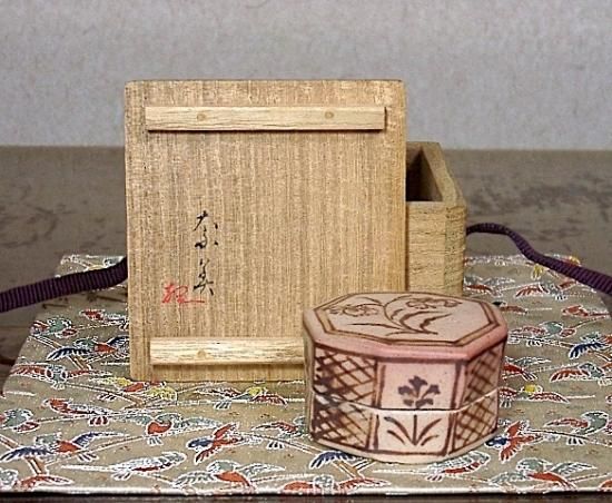 春来居主人 多気檗山作 三島手茶碗 銘・一期一会 共箱 無傷 古物。