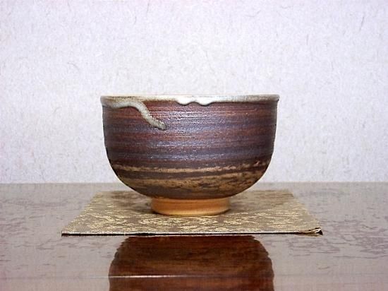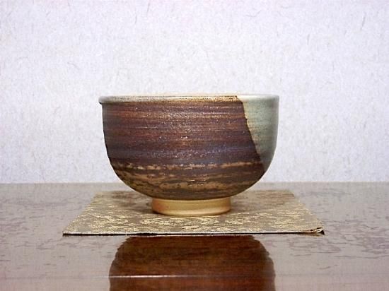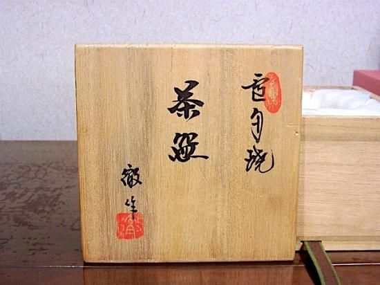 常滑焼 松本重信 作 山本石荘絵付 鉄絵茶碗 共箱 無傷 保証。