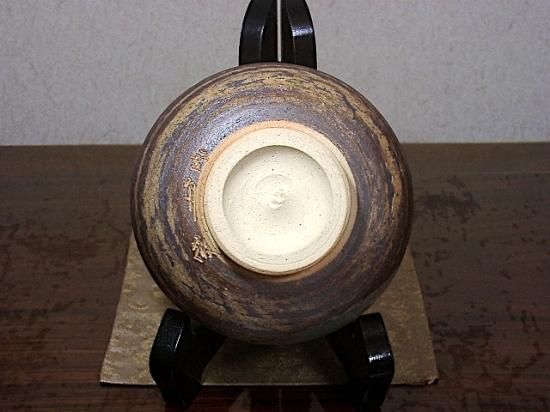 膳所焼 岩崎新定(陽炎園)作 茶入 肩衝茶入 共箱 無傷 保証。