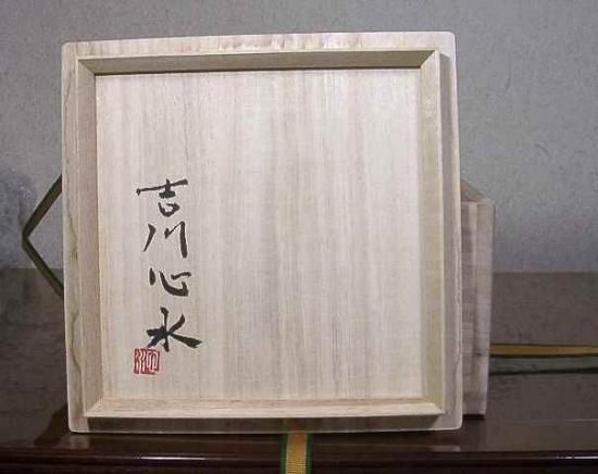 益子焼 吉川心水 作 井戸形 茶碗 無傷 共箱 保証。