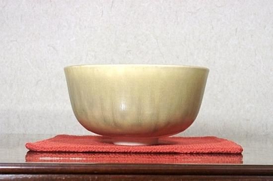 京焼・清水焼 醍醐窯 島 荷平(初代) 作 赤楽平茶碗 無傷 箱合 保証。