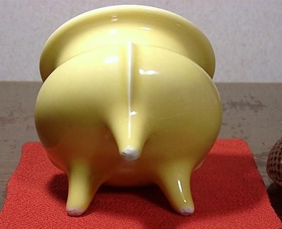 京焼・清水焼 新開邦太郎(寛山)作 黄均瓷袴腰香櫨 共箱 無傷 保証。
