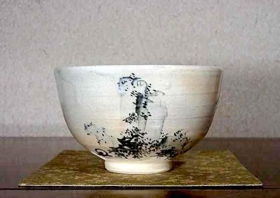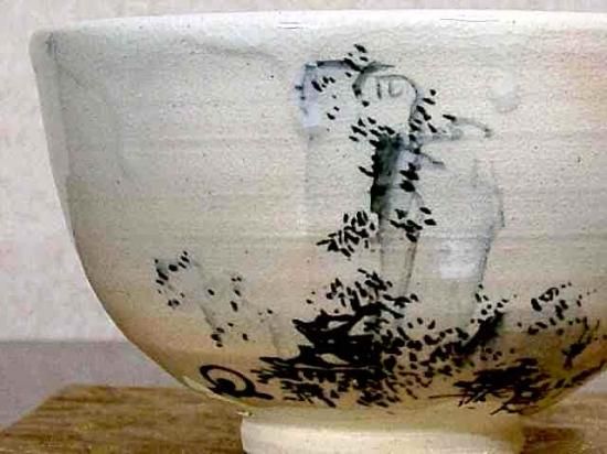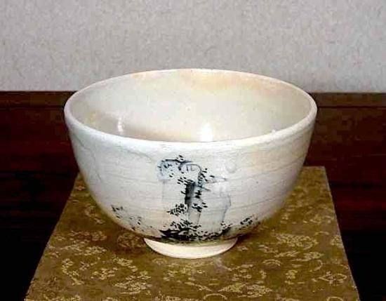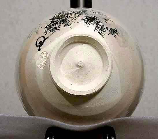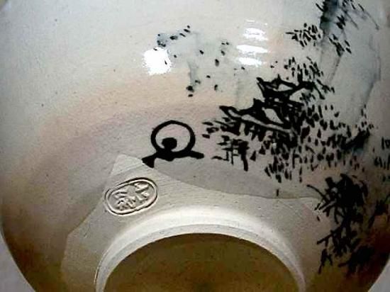 京焼・清水焼 宇野仁松 作 淡虎釉 茶碗 無傷 共箱 在銘 保証。