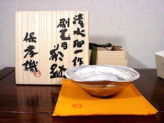 京焼・清水焼 今井政之 作 黄伊羅保No2 茶碗 箱合 無傷 。