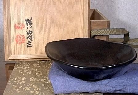 萩焼 坂高麗左衞門(十世)作 刷毛目 平茶碗 無傷 共箱 在銘 保証。