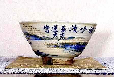 京焼・清水焼 建仁寺四代管長 竹田黙雷老師 筆「西江水」花押 茶碗 無傷 箱合。