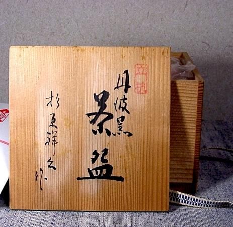 丹波立杭焼 杉原祥公 作 丹波黒 茶碗 共箱 無傷 保証。