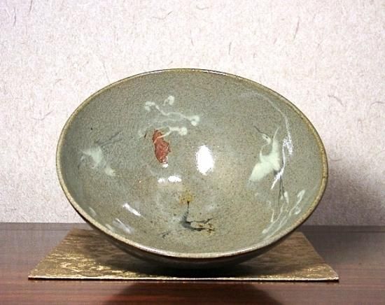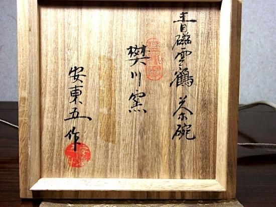 韓国 樊川窯 安 東五 作 青磁雲鶴 茶碗 無傷 共箱 保証。