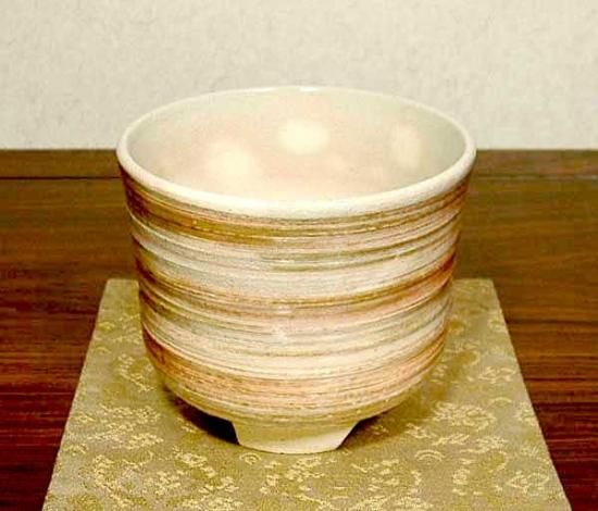 京焼・清水焼 観修寺窯 手塚 充 作 金刷毛目筒 茶碗 共箱 無傷 保証。