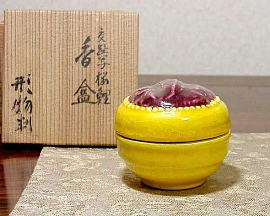 京焼・清水焼 久世久宝(初代)作 仁清写 絵馬 香合 無傷 共箱 保証。