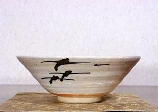 東陶会 宮之原 謙 作 郡鶴図 鉄釉 茶碗 無傷 共箱 保証。