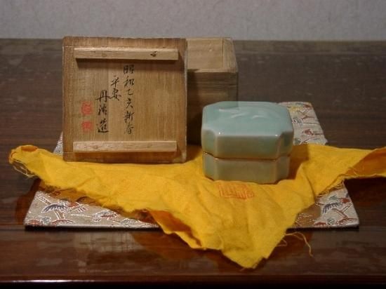 韓国 樊川窯 安 東五 作 雲鶴青磁 茶碗 無傷 箱合 保証。
