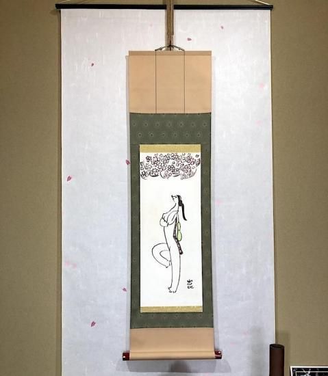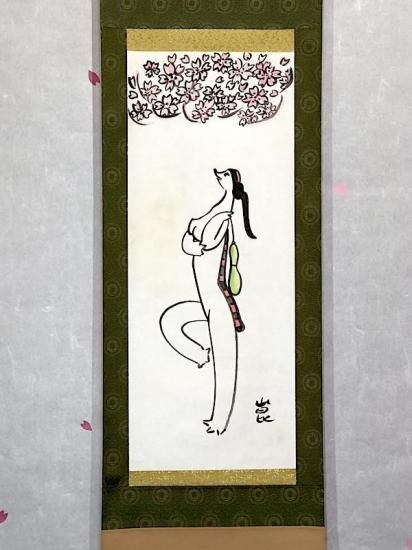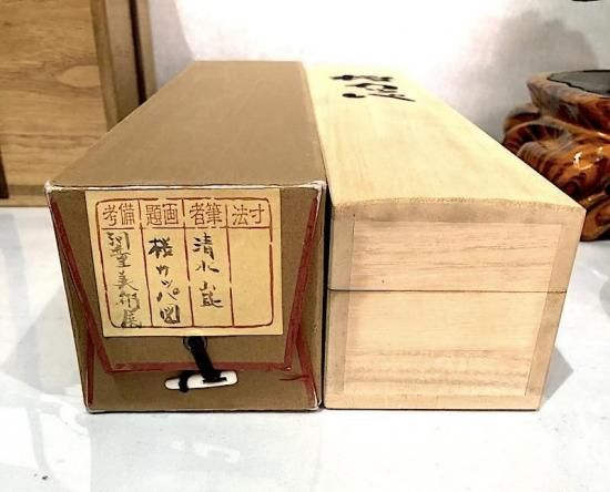 掛軸 清水崑 筆「桜カッパ」紙本 無傷 共箱。